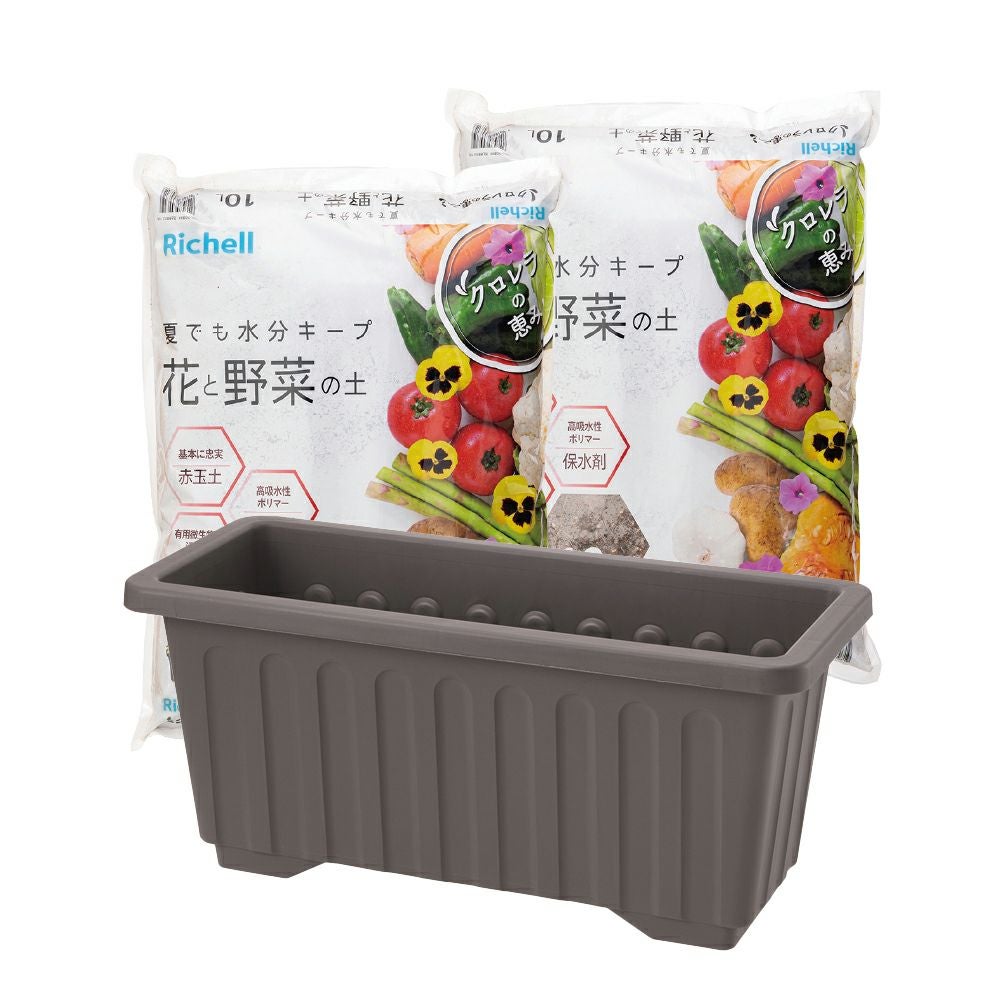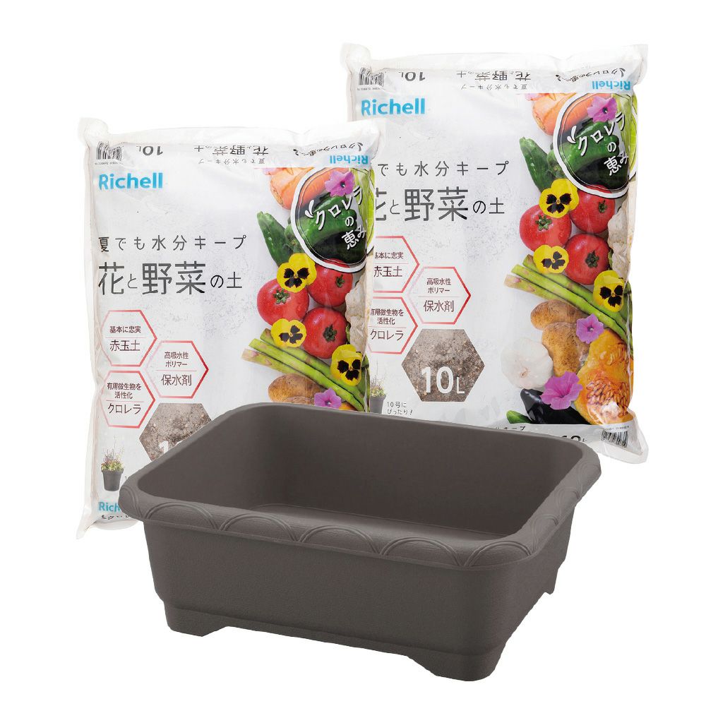 他の画像を見る リッチェルウェブショップ限定深さがあるので、背丈のある植物に適しています。 深型プランター 60型 花と野菜の土 10L 2個セット 販売価格 ¥ 3,132 税込 お気に入りに登録する